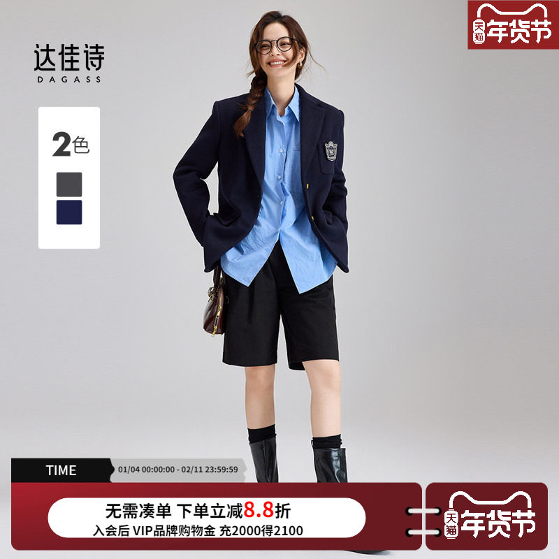 达佳诗毛呢西装外套秋冬小个子休闲西服大学生学院风女士呢子大衣