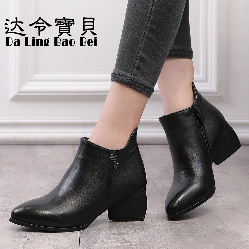 - 女短靴冬加绒 粗跟