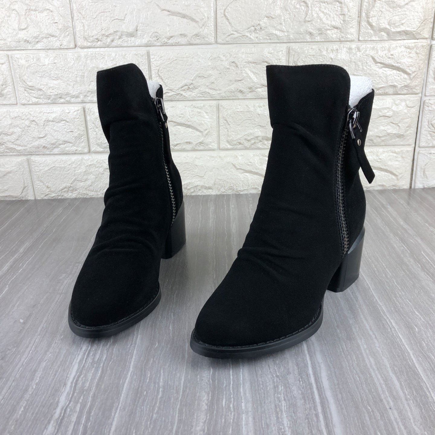 - 天鹅绒粗跟短靴