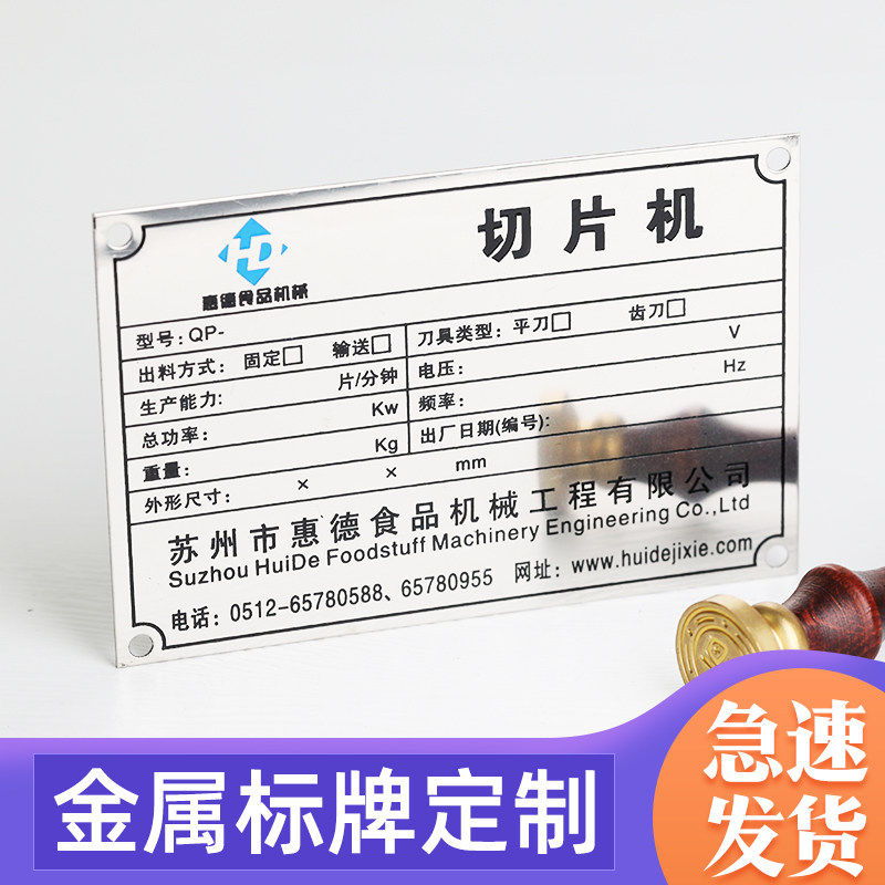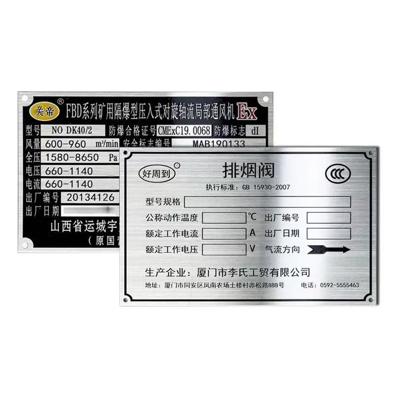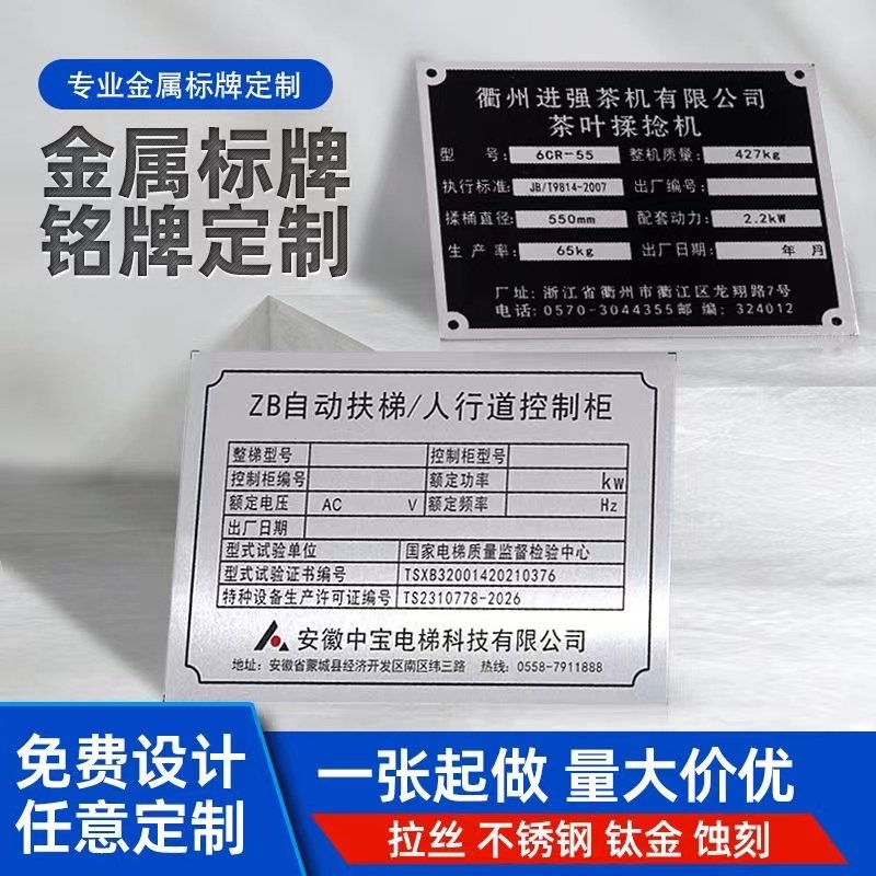 设备金属铭牌定制304 316L不锈钢标牌铜牌铝牌腐蚀丝印烤漆定做空白铁牌标识制作铝合金小商标logo标签贴自粘