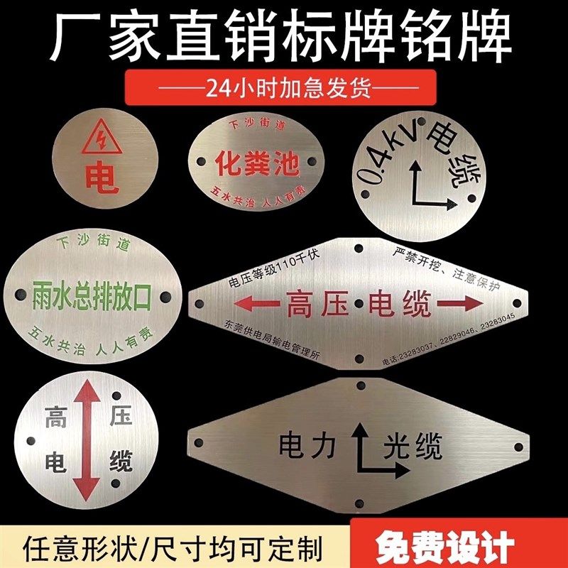 标牌铭牌机器设备铝定做铝牌定制不锈钢金属铜牌制作腐蚀电缆标识