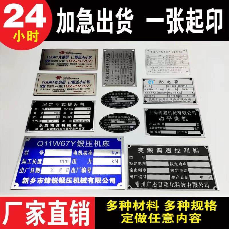 铭牌铝牌定做定制铝标牌不锈钢空白制作丝印UV打印激光腐蚀标签金属机器设备logo牌配电箱机床面板金属牌订做