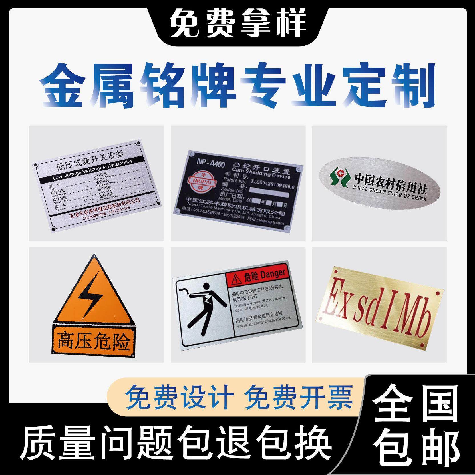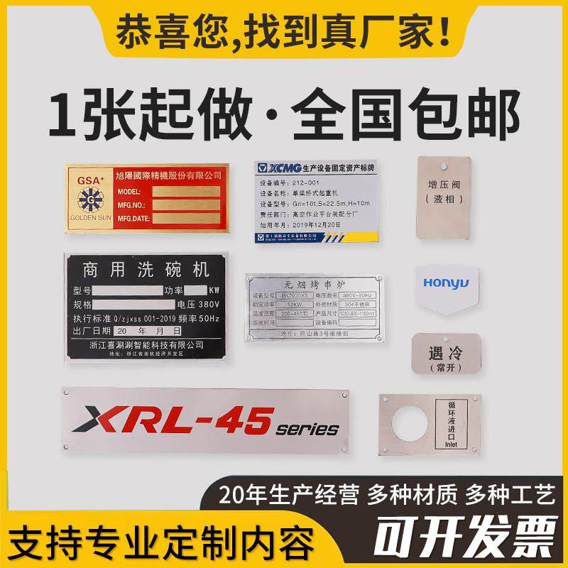 一个起做顺丰包邮铭牌定制机器设备金属铭牌贴铝牌定做304316不锈钢标识牌腐蚀UV丝印标牌订做电缆配电箱标牌