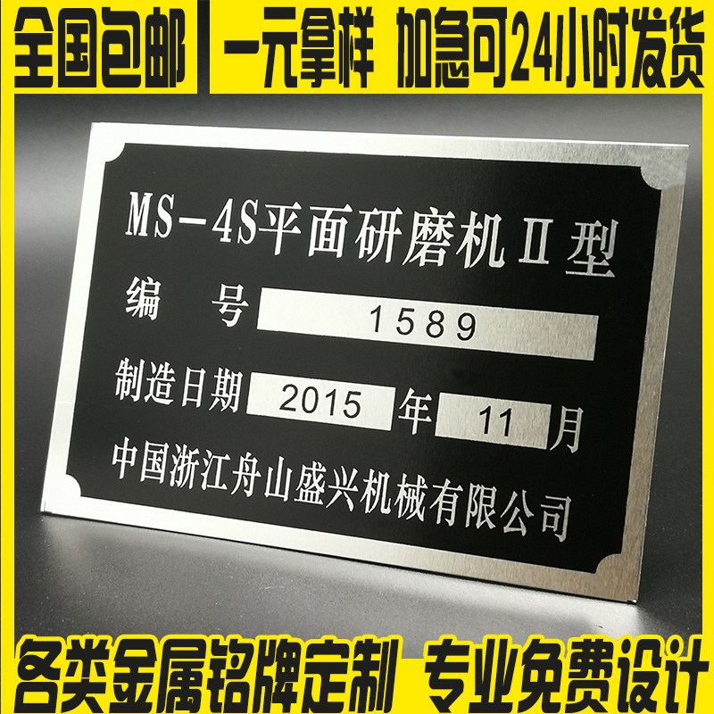 金属铭牌定制铝牌定做拉丝不锈钢腐蚀牌UV机械机器设备小商标logo