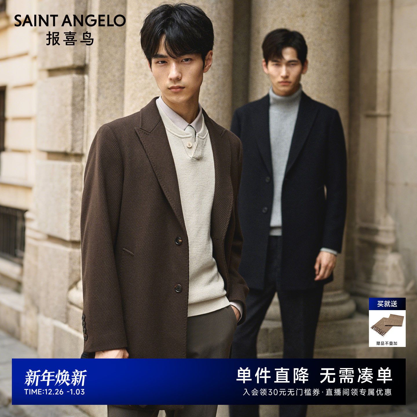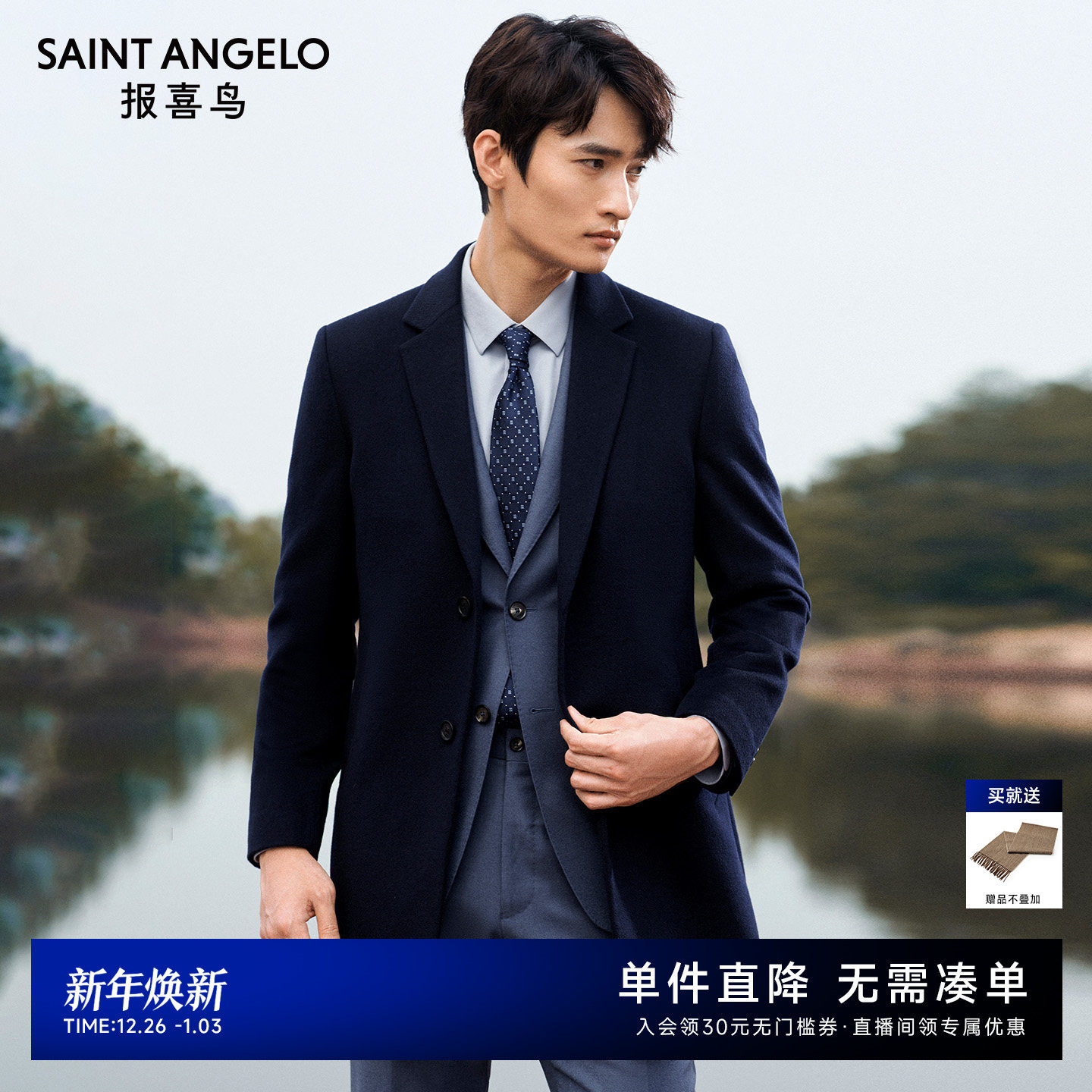 【柴斯特羊绒】报喜鸟秋季新款男士商务正装毛呢大衣外套男款上衣