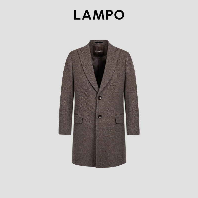 【羊毛羊绒】LAMPO/蓝豹商务大衣男中长款羊绒混纺西服领毛呢外套