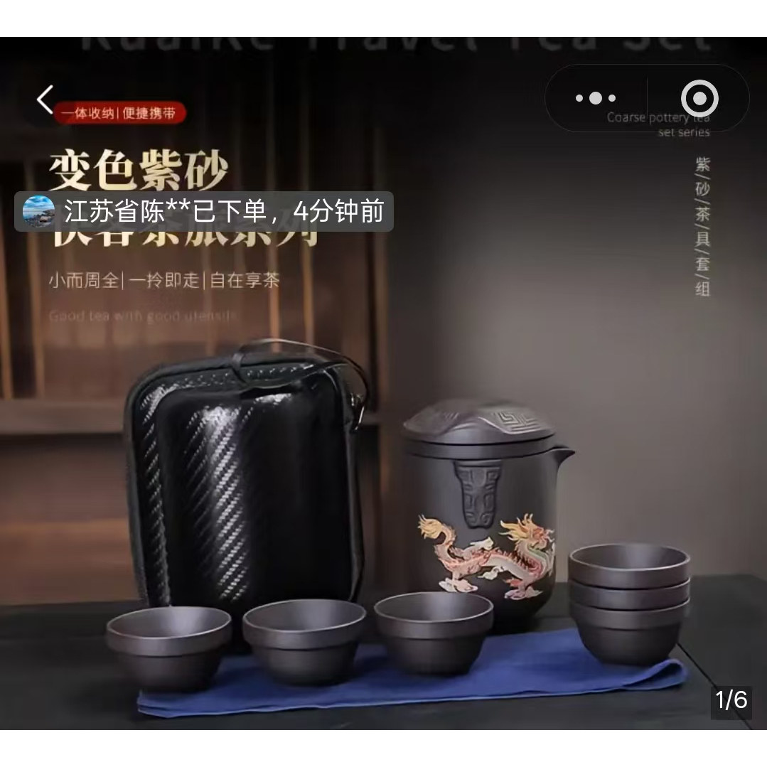 凯丽放心购紫砂变色龙凤壶便携式一壶六杯泡茶壶防烫快客旅行茶具