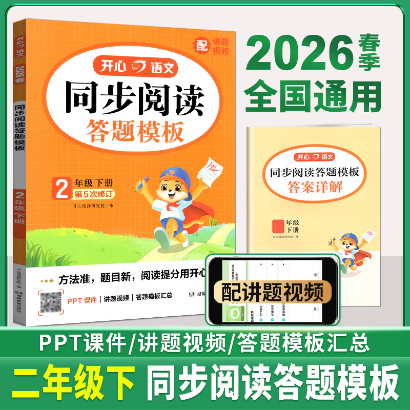 2026版开心同步阅读答题模板二年级下册人教版小学语文阅读理解答题方法技巧每日一练阅读能力专项训练书