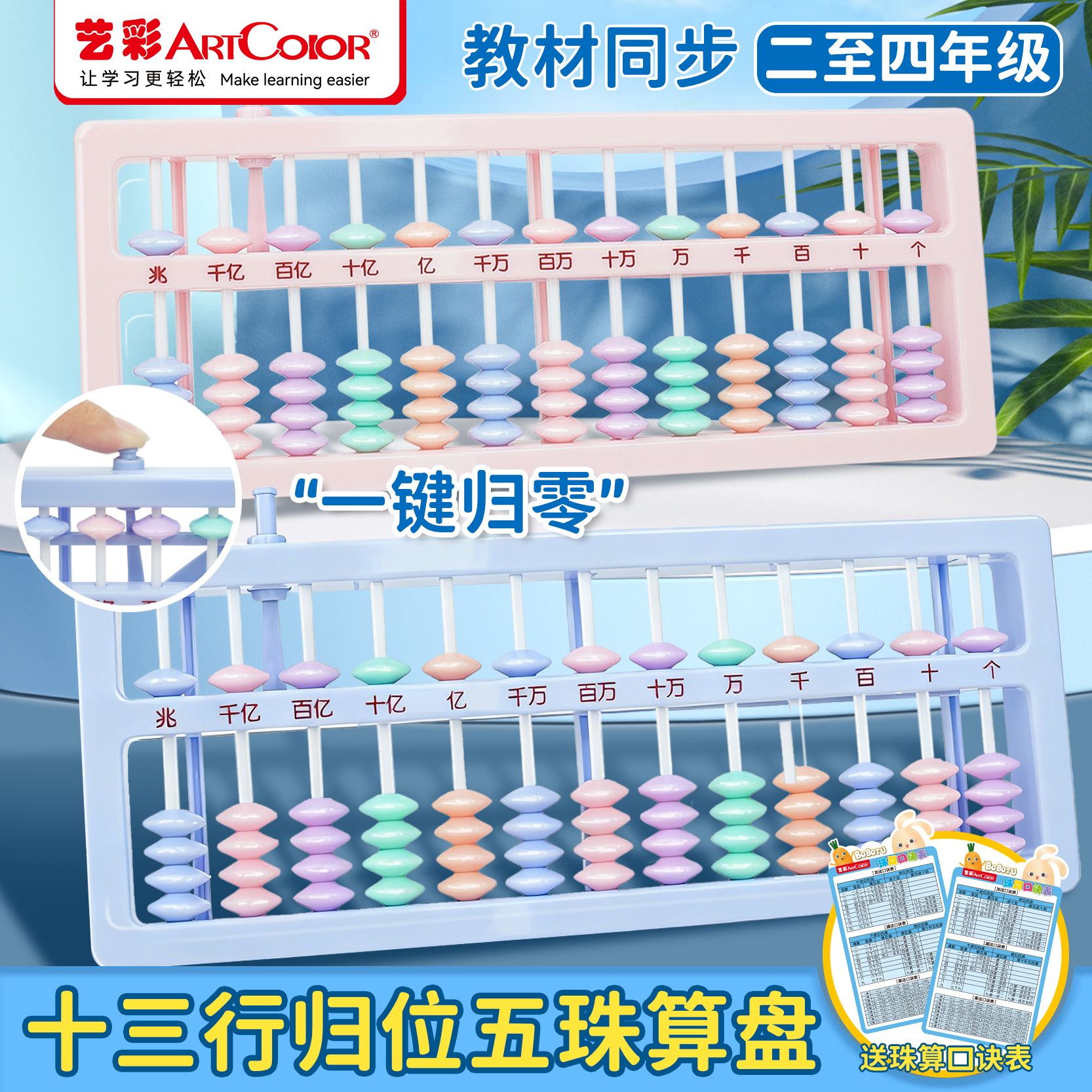 算盘计数器小学生珠心算二年级下册人教版数学七珠7珠13档5珠五珠儿童幼儿园小学生专用算珠教具学具老式算盘