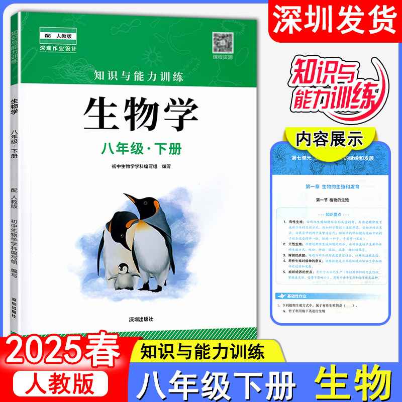 2025春知识与能力训练生物 八年级下册初中二年级下册人教版生物同步教材练习知识与能力训练 深圳出版社 深圳发货