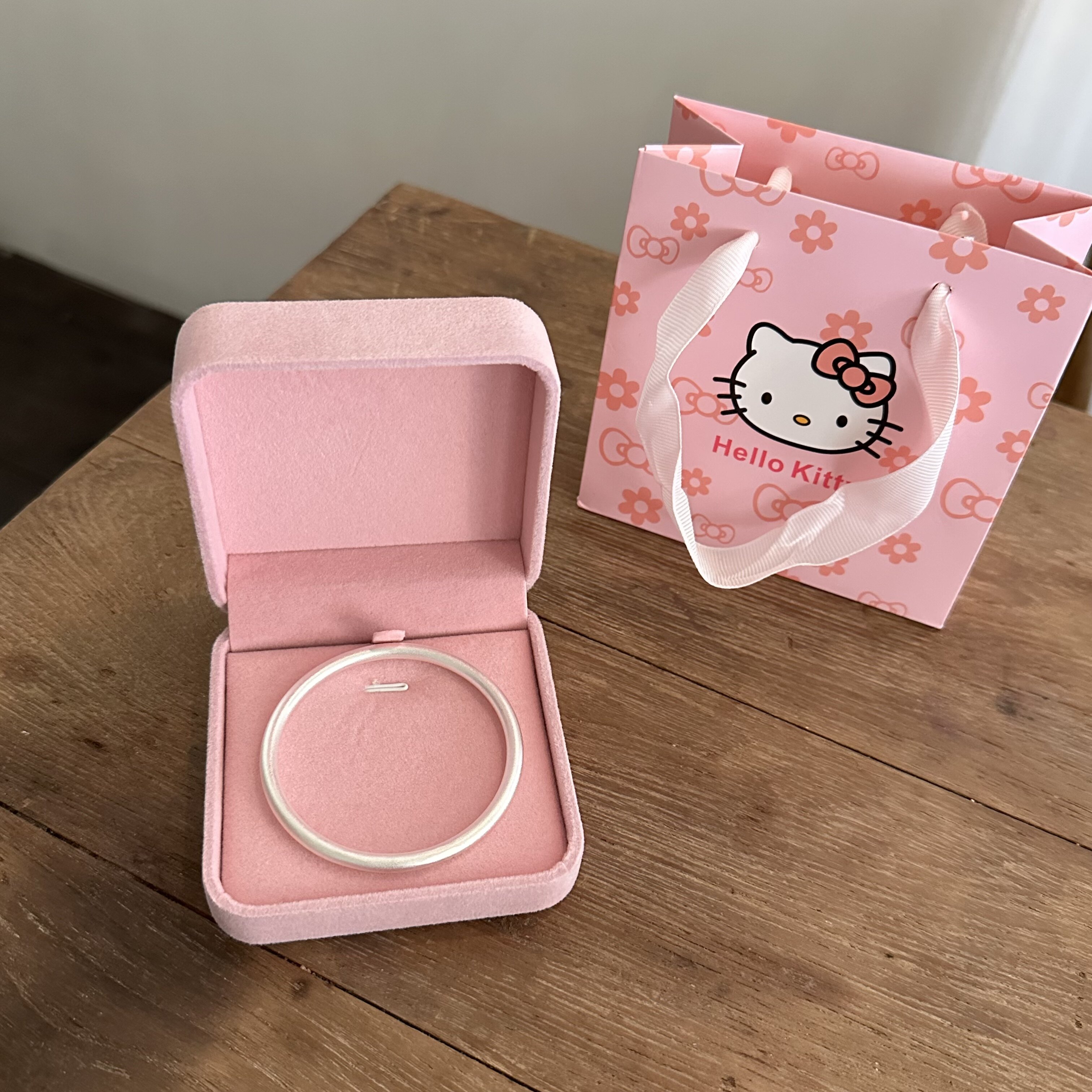 潮色绘x三丽鸥HelloKitty999纯银足银手镯子女生手链银饰生日礼物