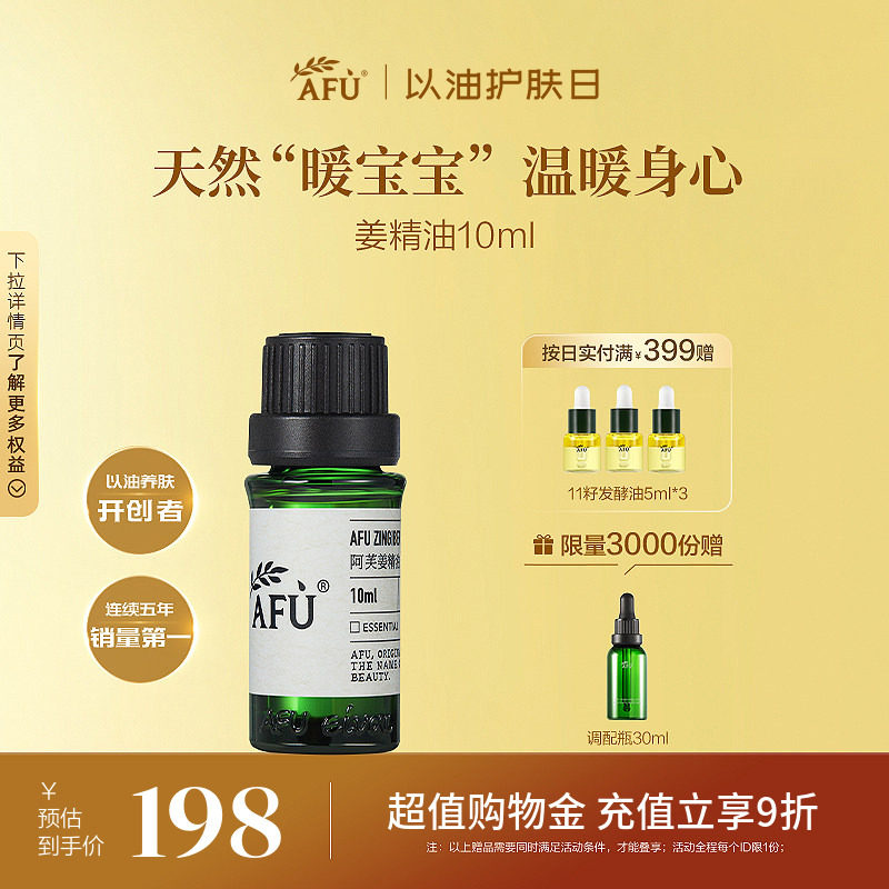 阿芙姜精油10ml 全身身体按摩油推油护发生姜发热泡脚天然单方