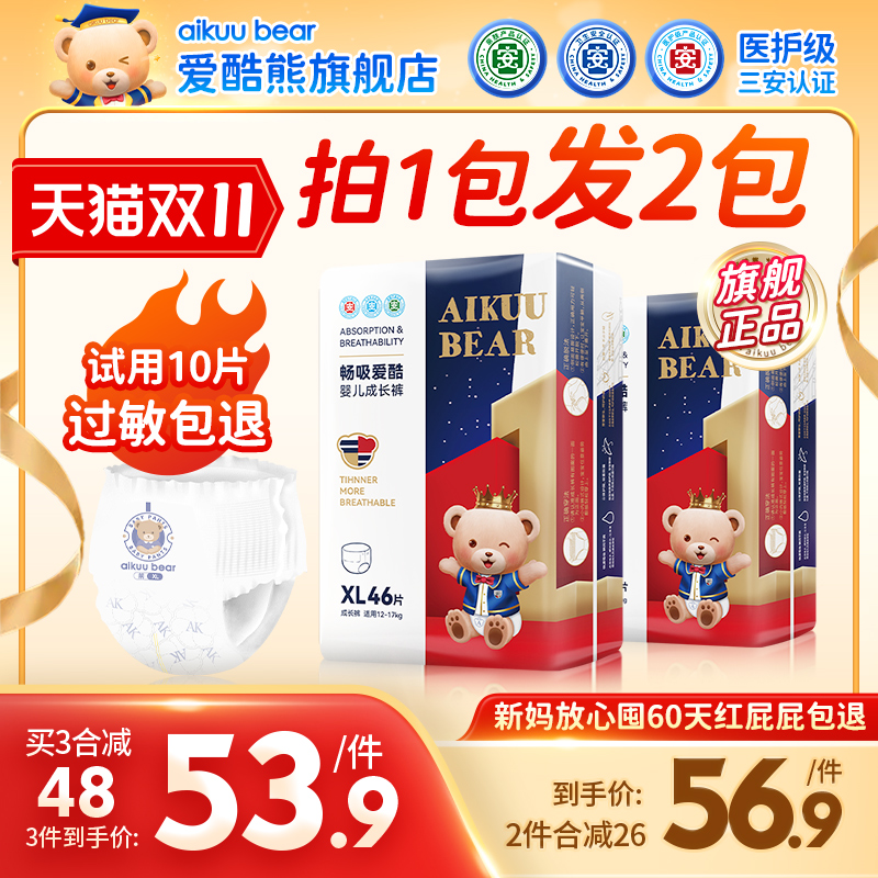 爱酷熊医护级拉拉裤XL超薄透气男女宝宝专用纸尿裤新生婴儿尿不湿