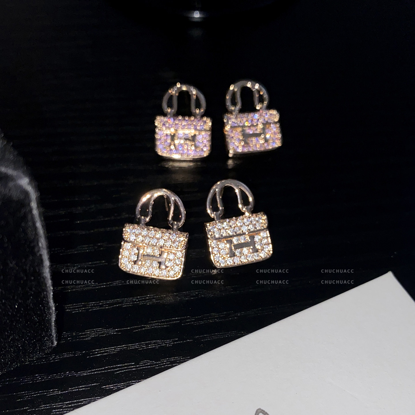 H字母包包耳环18K玫瑰金吊坠镶钻项链锁骨链精致轻奢高级感耳饰女