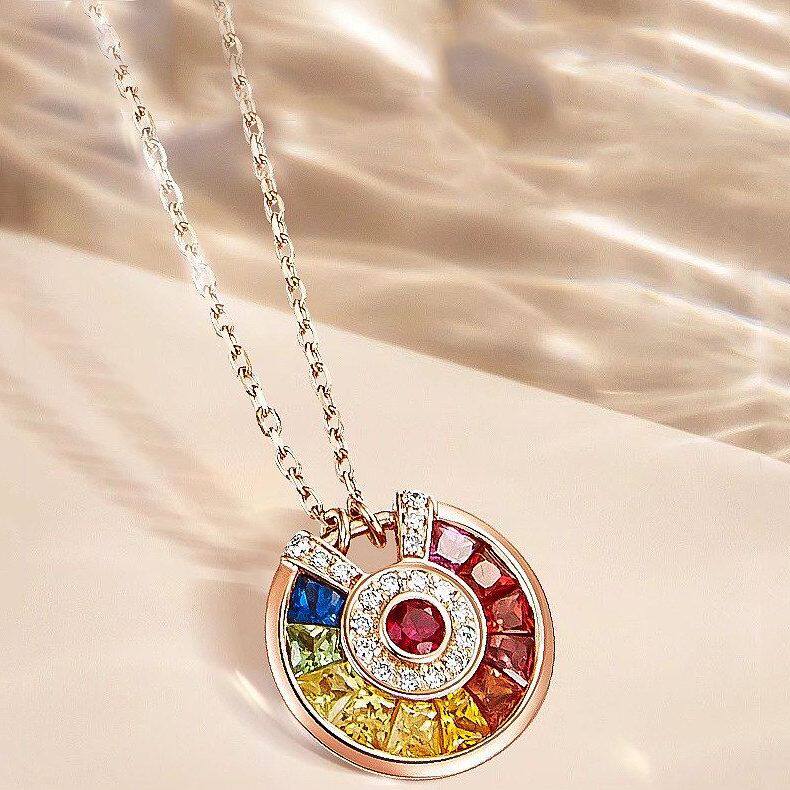 聚会护身符幸运金项链吊坠宝石玫瑰18K锁骨项链彩色七彩女镀新款