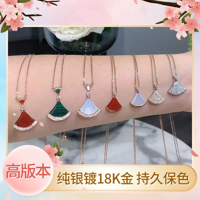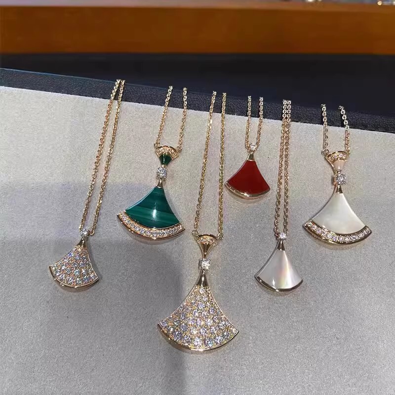 18k玫瑰金小裙子项链扇子锁骨链白贝母红玉髓吊坠送女友老婆礼物