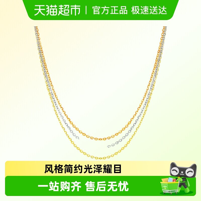 周大生黄18K金项链锁骨链肖邦链玫瑰金素链配吊坠生日礼物送女友