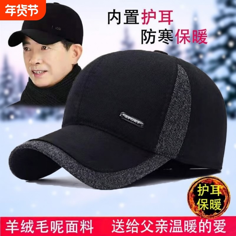 冬季男士帽子休闲冬帽棒球帽加绒护耳保暖鸭舌帽户外棉帽中年男款