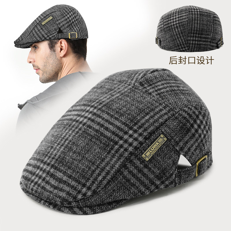 英伦贝雷帽有型格子鸭舌帽秋冬老中年毛呢男前进帽格纹复古画家帽