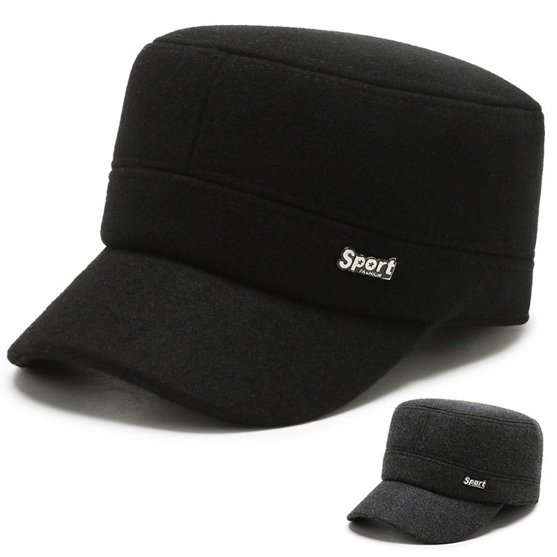 帽子男士秋冬保暖帽户外潮流毛呢帽韩版时尚中年平顶帽护耳鸭舌帽