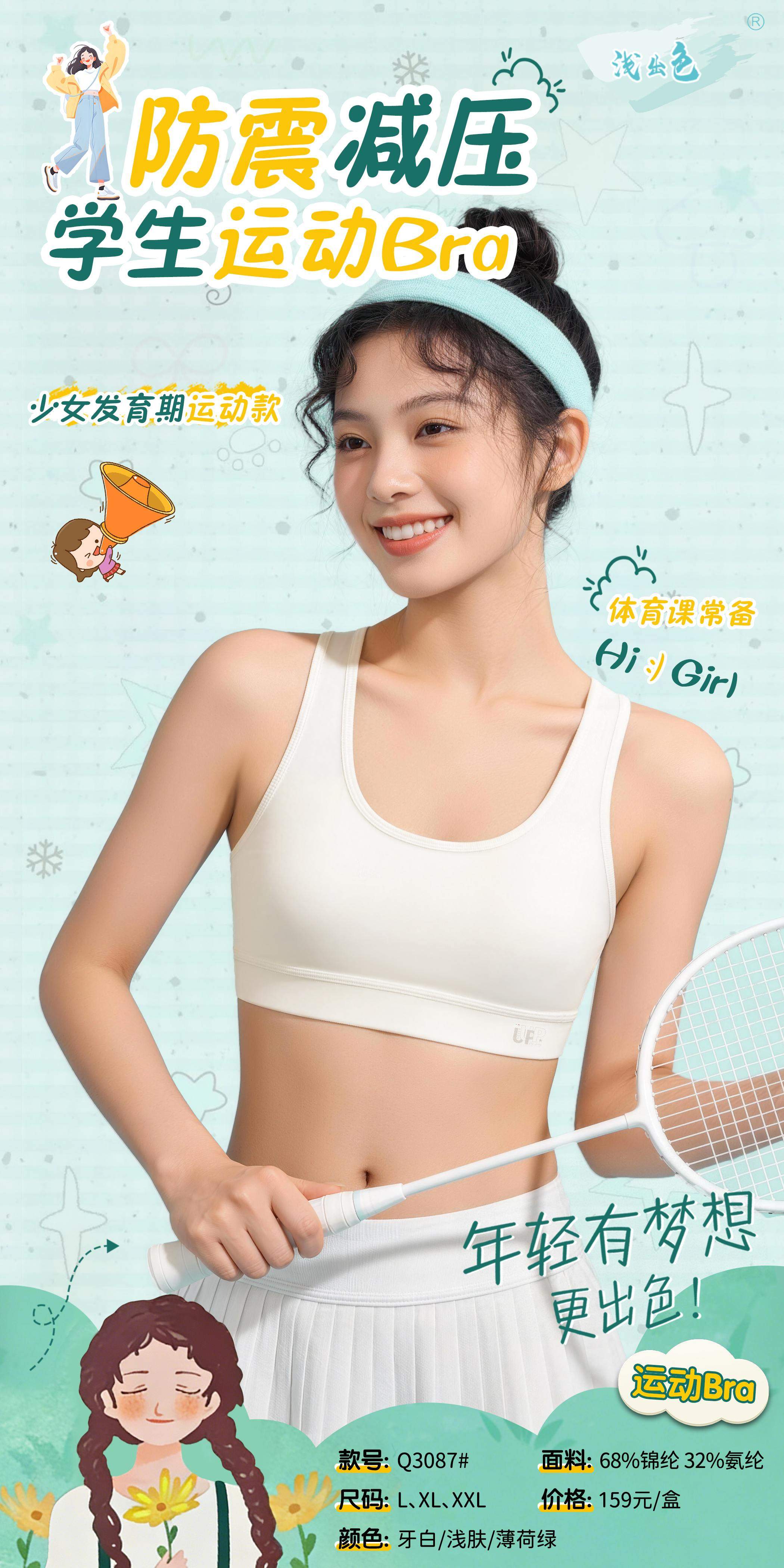 浅肤色少女文胸初高中学生运动内衣背背佳防震Bra防驼背背心3807