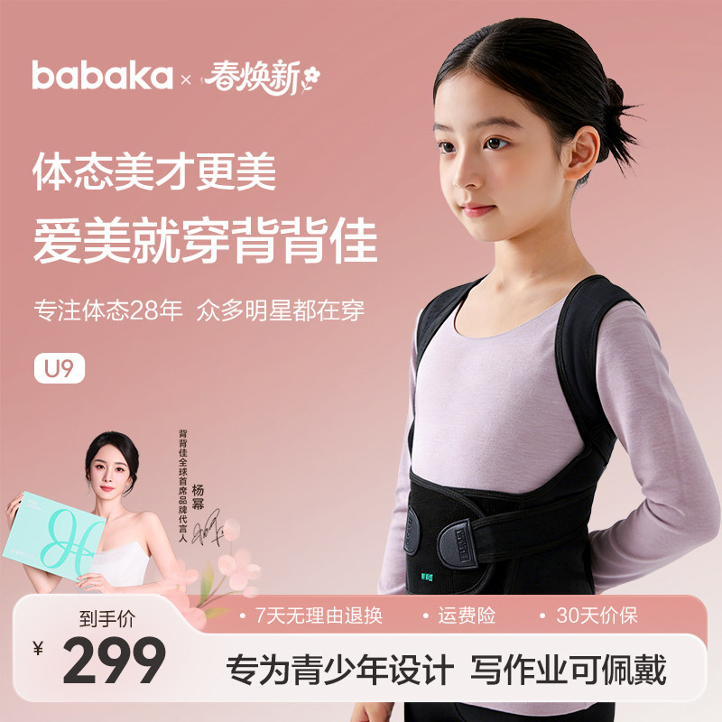 背背佳U9青少年矫姿带背部支撑驼背矫正儿童男女学生写字固定护腰