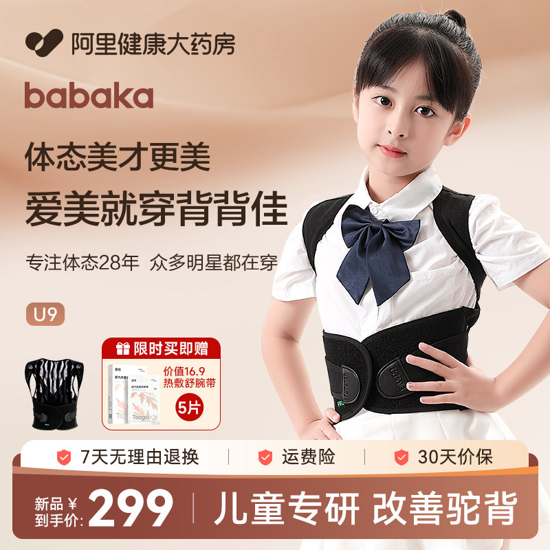 背背佳儿童U9矫姿带青少年挺拔矫正带背部拉伸预防中小学生坐姿