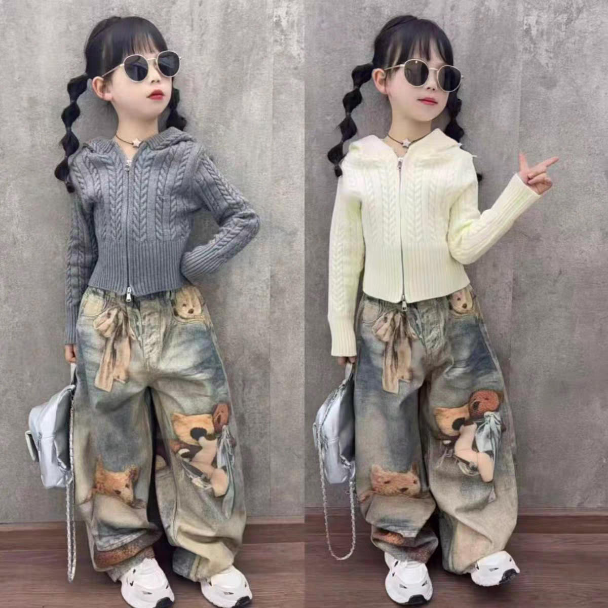 女童春装套装2026新款儿童洋气时髦针织马甲宝宝牛仔裤衬衫两件套