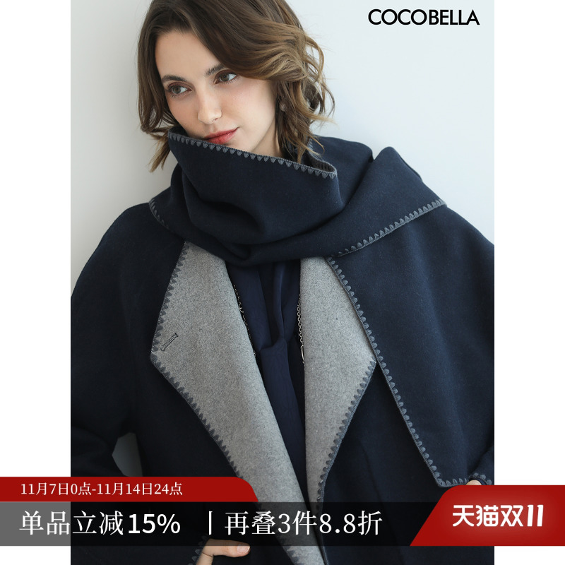 COCOBELLA新款两面穿手工羊毛大衣围巾套装毛呢外套WL3221-2