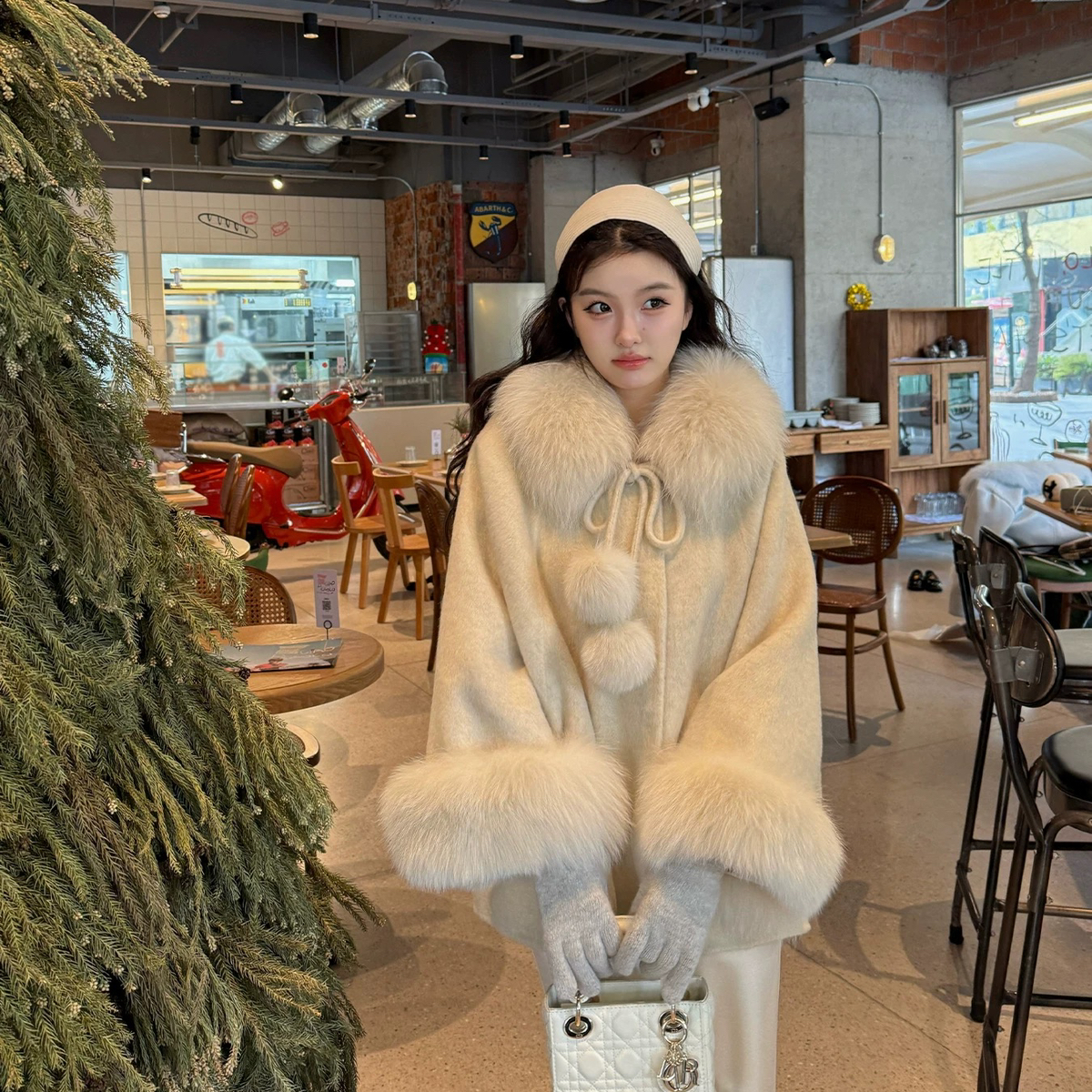 一起手工羊毛大衣女斗羊毛外套(配可拆卸狐狸毛)(含100羊毛)98