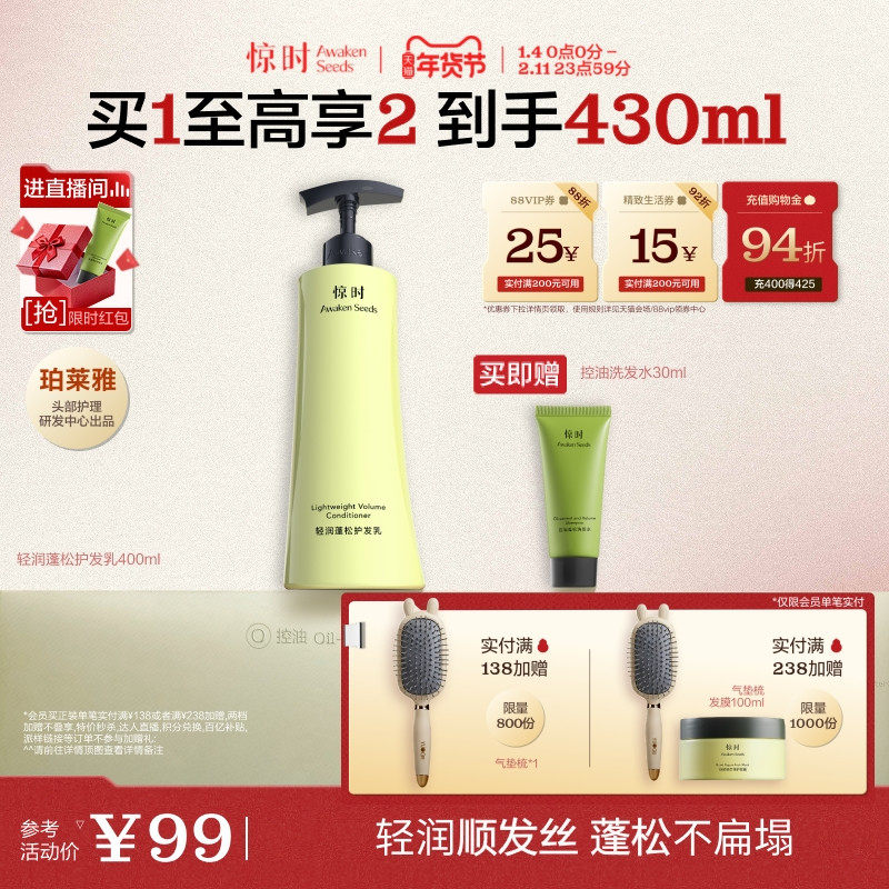 珀莱雅旗下惊时护发乳轻润蓬松软扁塌神器柔顺顺滑改善毛躁护发素