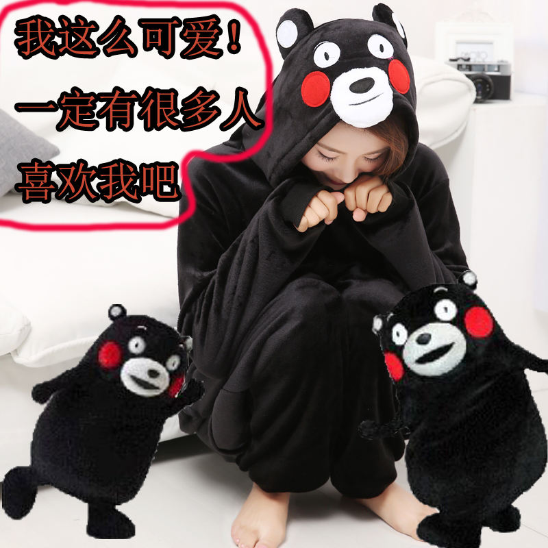 熊本熊家居服外套 熊本县连体衣睡衣袋 宅人动漫周边男女绒onesie