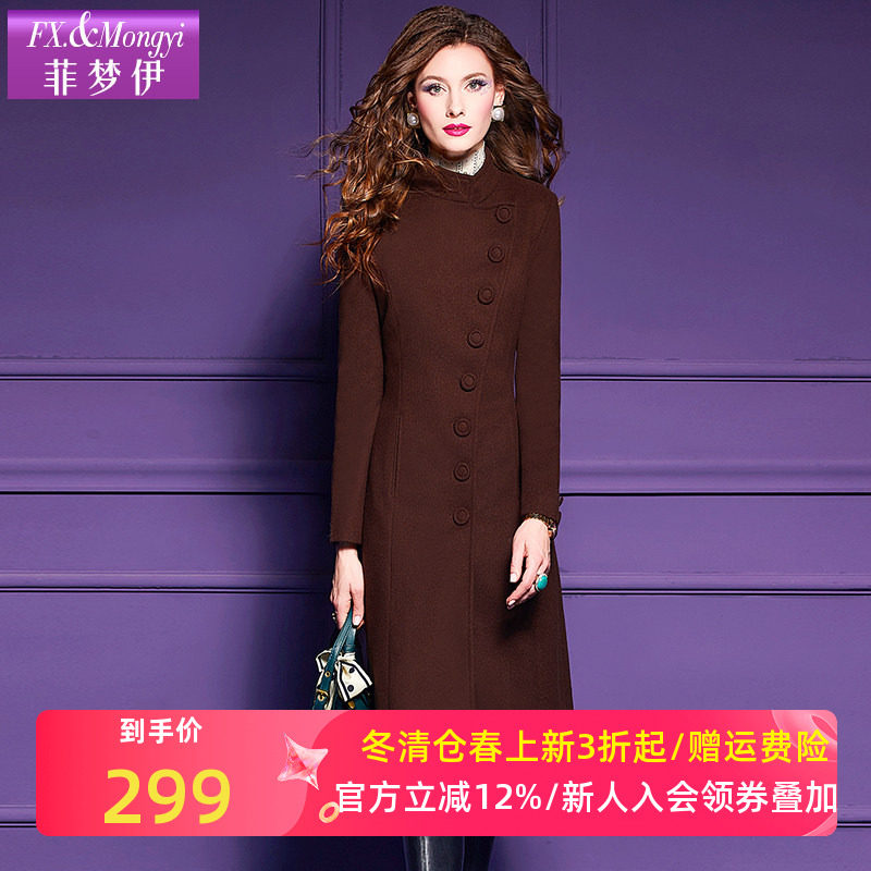 【直播专享】菲梦伊含羊毛紫色毛呢外套女冬季加厚修身中长款大衣