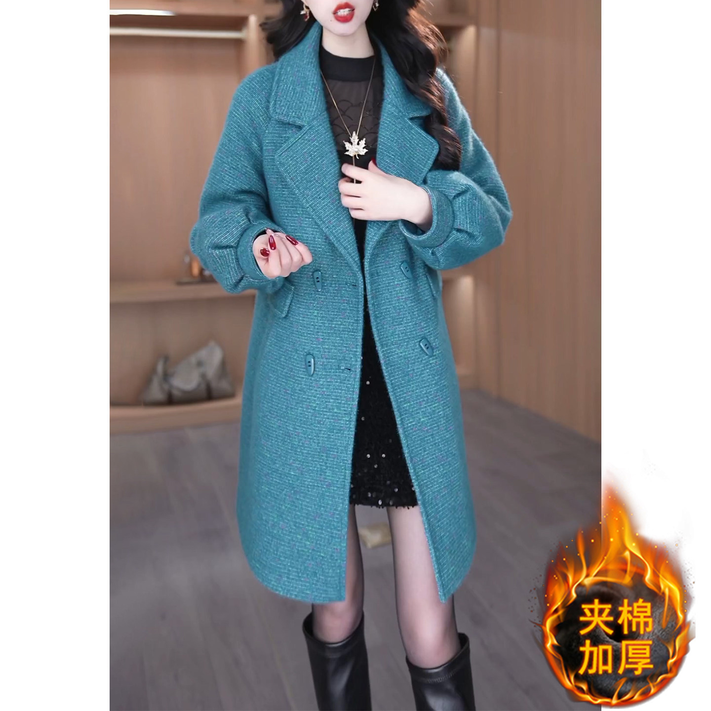 - 夹棉加厚毛呢大衣女
