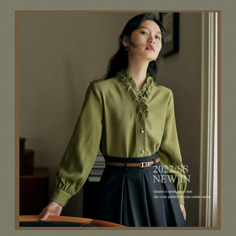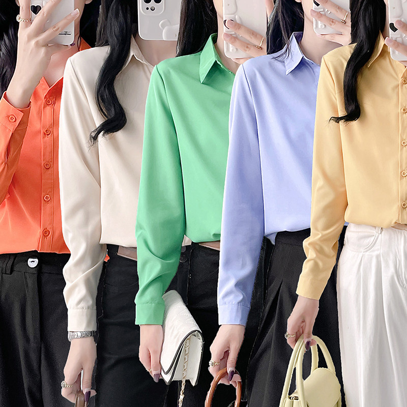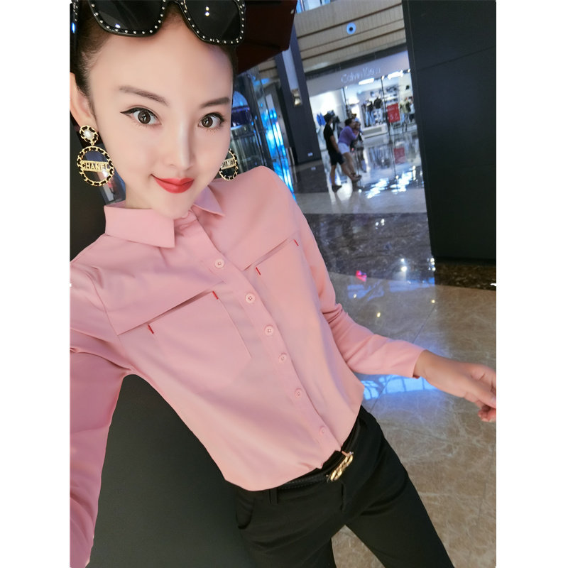 - 长袖衬衫女 韩版 宽松 灯笼袖