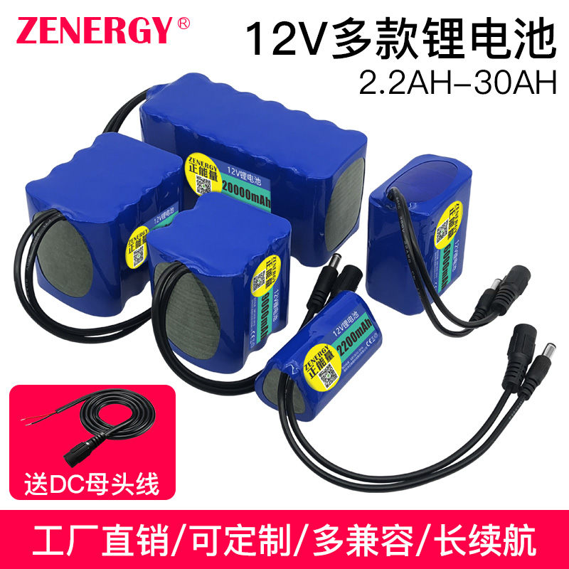 亿森能12V大容量锂电池组足安11.1伏18650适用LED灯户外音响路灯