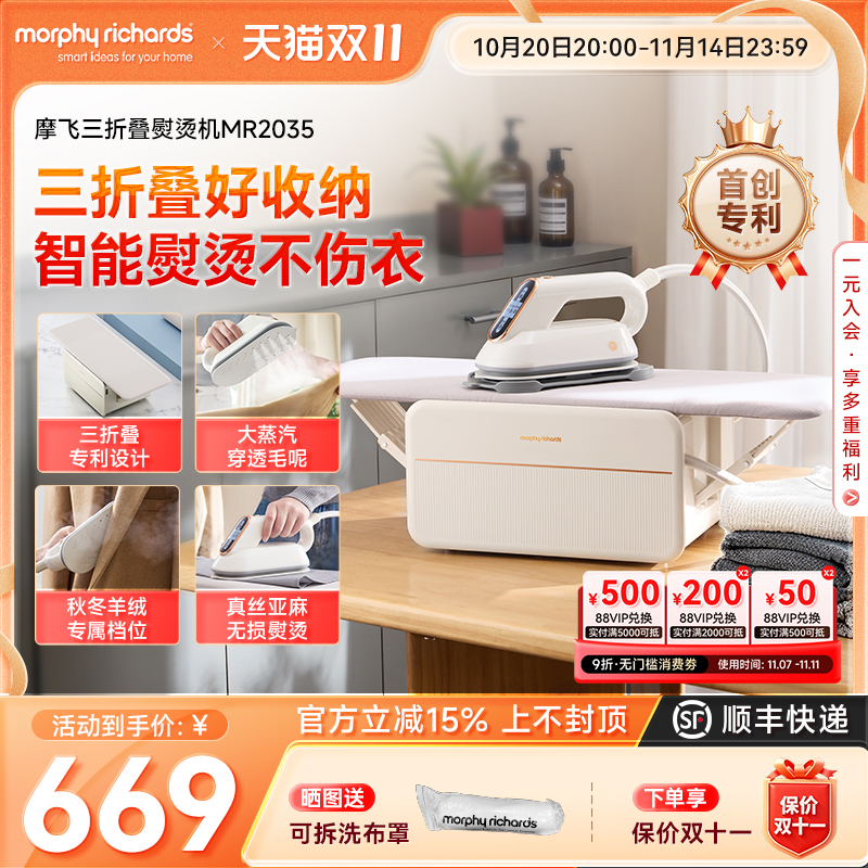 摩飞三折叠熨烫机家用蒸汽手持电熨斗杀菌除螨脉冲增压蒸汽熨烫台