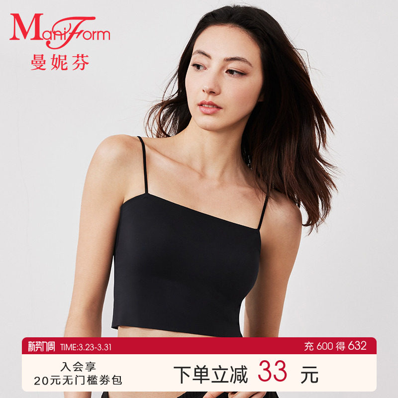 曼妮芬短款带杯垫细肩带背心无钢圈免穿文胸女凉感吊带可外穿打底
