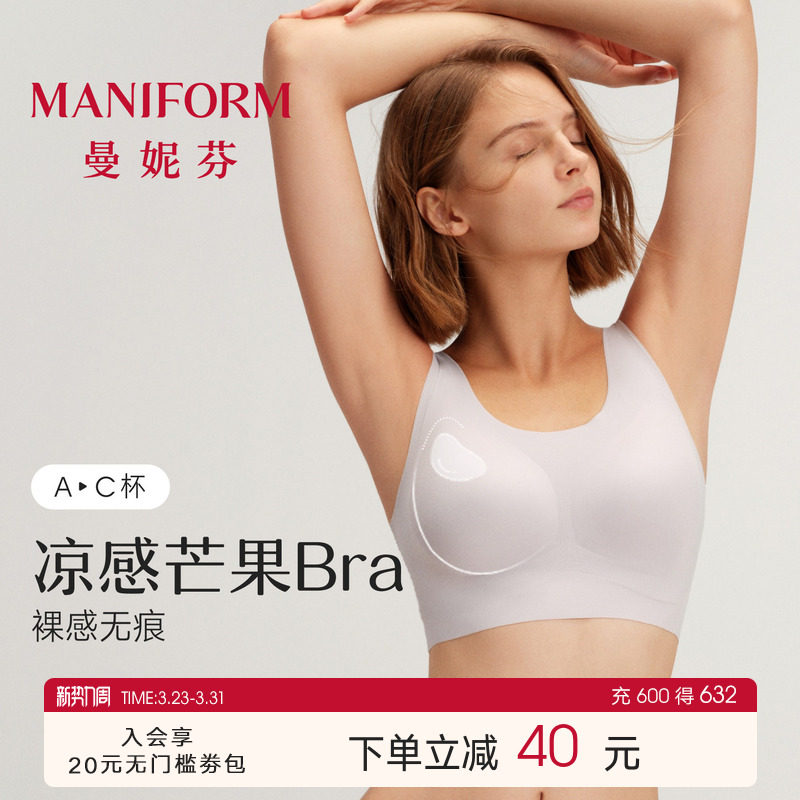 曼妮芬芒果杯智慧无尺码无痕隐形粉底液内衣女无钢圈背心文胸胸罩