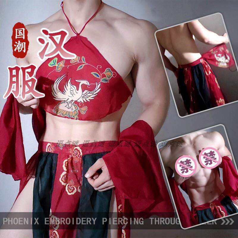 男士红色宫廷肚兜式睡衣性感挂脖汉服睡衣禁欲系敦煌男性情调内衣