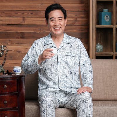 秋季老年人纯棉睡衣男性夏爸爸老头爷爷开衫长袖开门襟长裤两件套