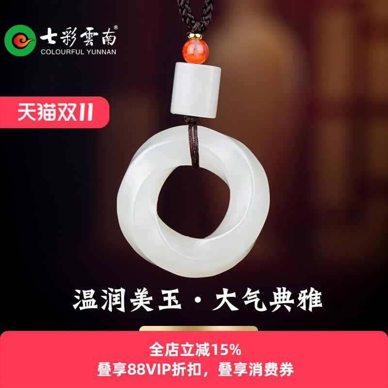 七彩云南和田玉莫比乌斯环平安扣吊坠玉坠玉扣玉石挂件男女款圆环