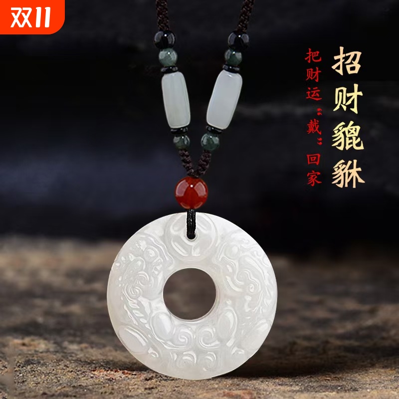mling阿富汗青白玉貔貅吊坠平安扣吊坠玉坠玉石挂件牌子饰品玉佩