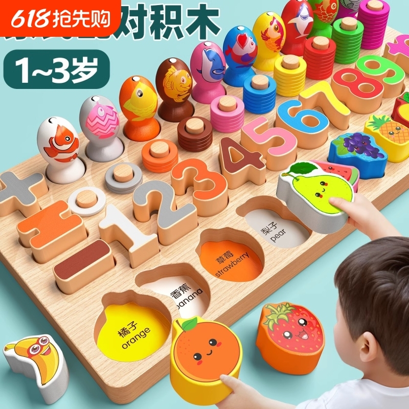 蒙氏早教益智儿童玩具数字拼图积木0到3岁宝宝益智拼装配对教具
