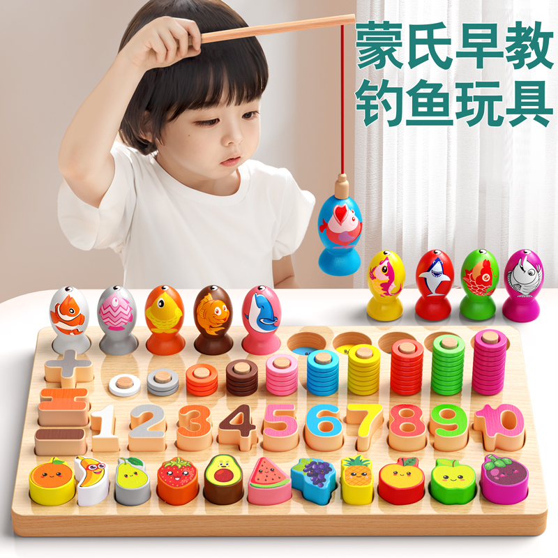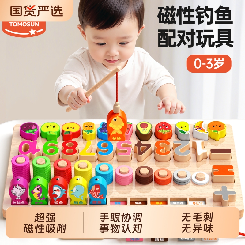 幼儿童启蒙益智力开发数字拼图积木早教1-2-3岁4男孩女孩钓鱼玩具