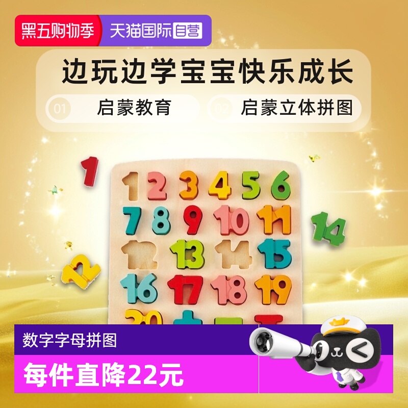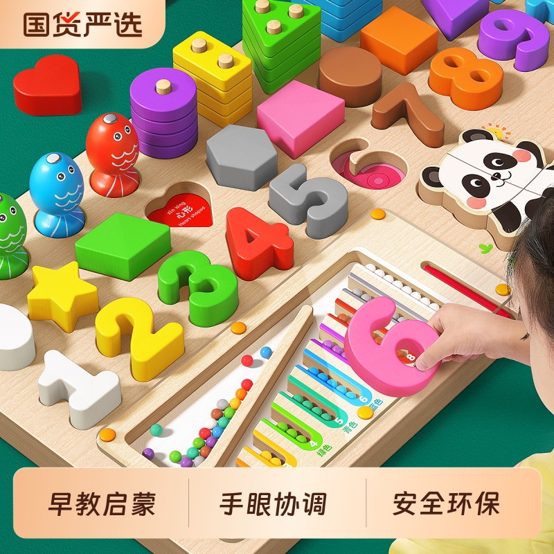 幼儿童玩具数字拼图早教益智启蒙4蒙氏1一2岁半3男孩女孩宝宝积木
