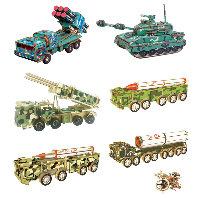 东风11A防空导弹 坦克火箭航母飞机 拼装益智玩具 木制3D数字拼图