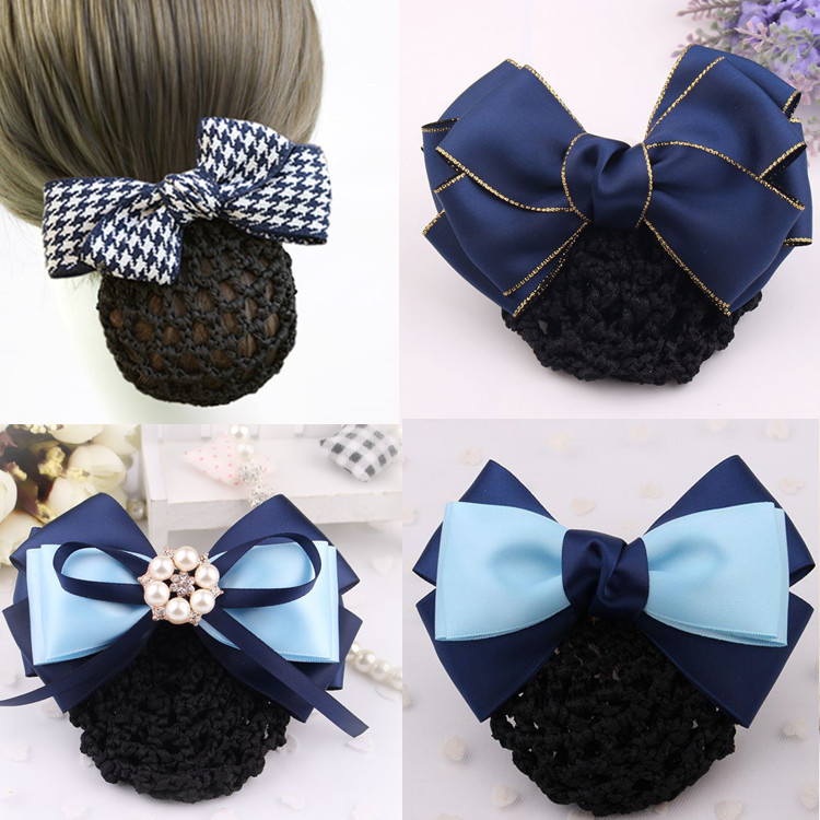职业头花女发网饰品韩国发夹酒店银行护士空姐盘发细网蝴蝶结工作