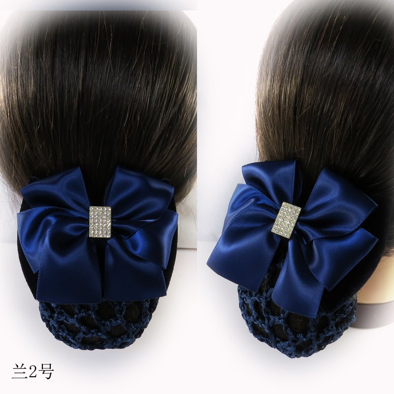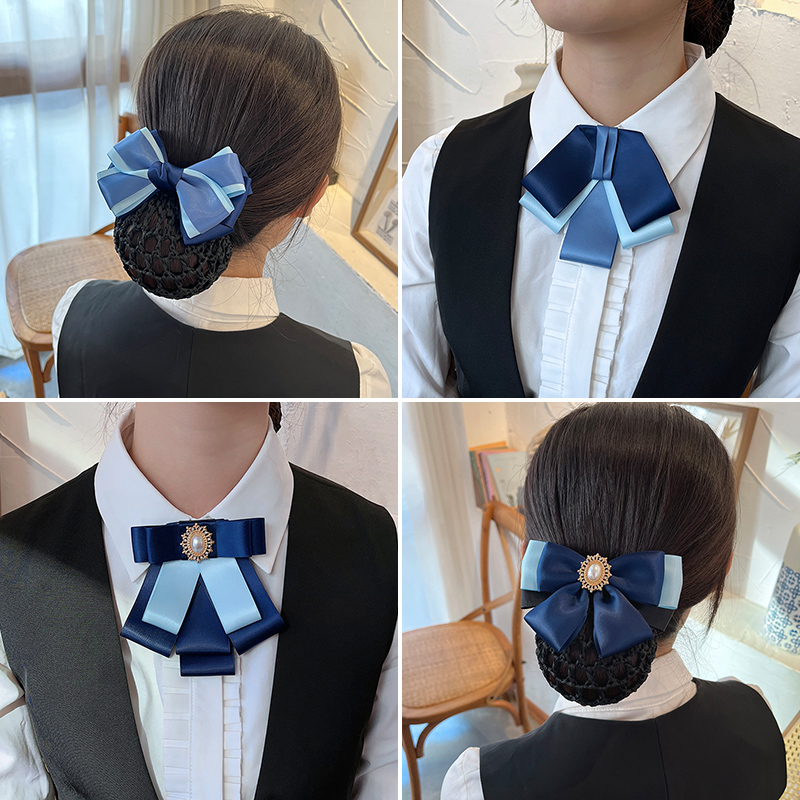 银行头花职业上班盘头发网护士工作头发网套服务员盘发蓝色蝴蝶结