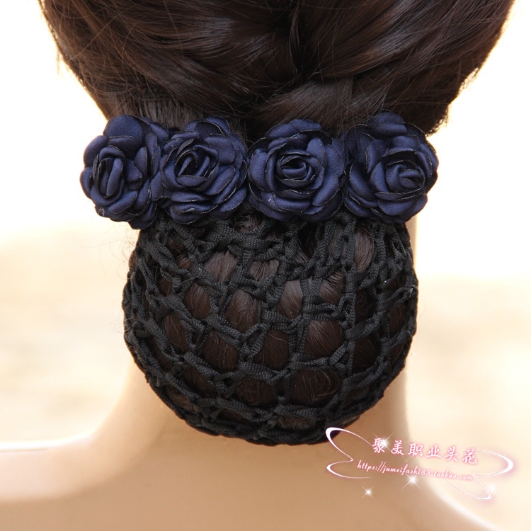 韩国藏蓝色空姐职业盘发夹 护士发网兜 酒店银行头花女发饰品包邮